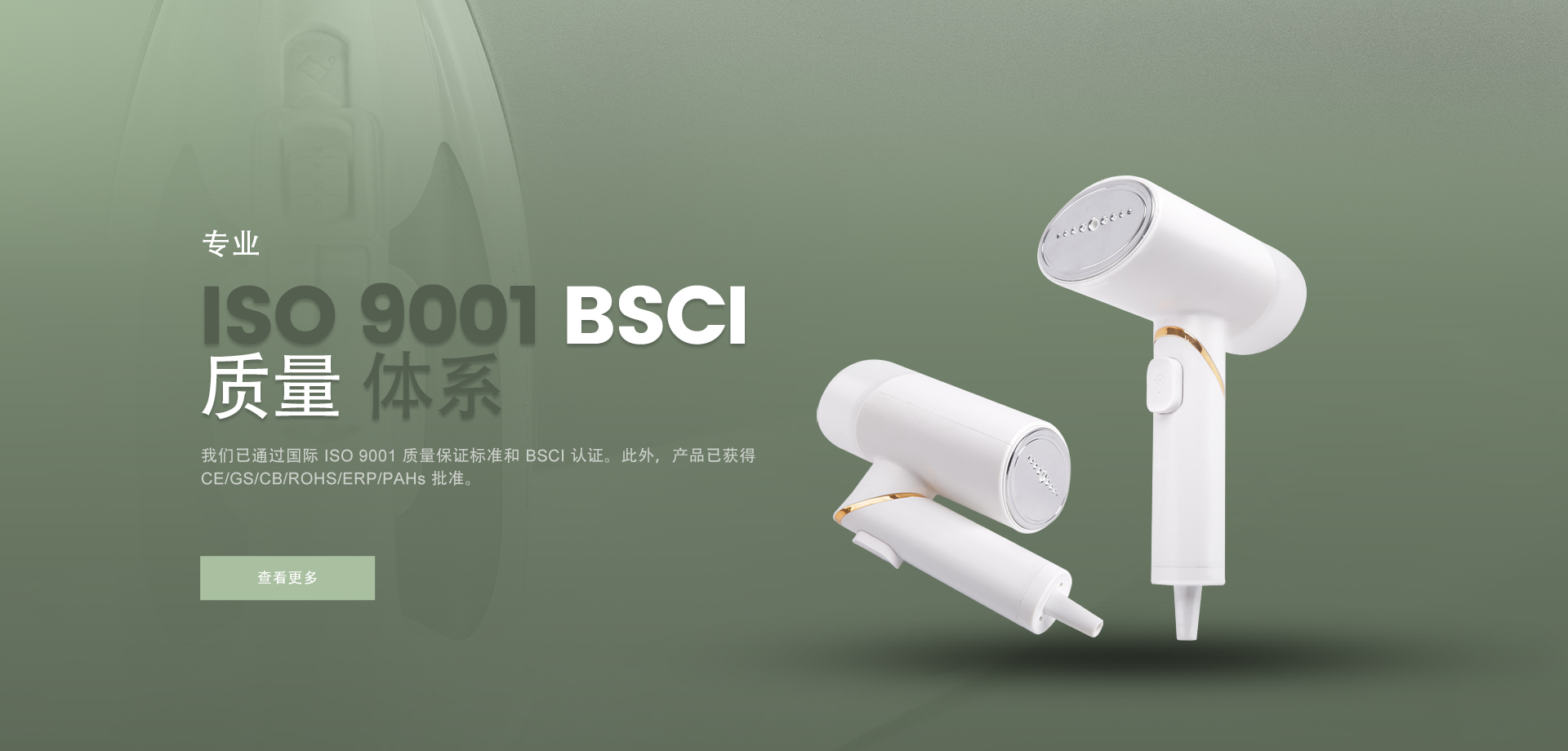 我們是一家專業(yè)的制造商和出口商,提供設(shè)計、開發(fā)、生產(chǎn)、銷售和相關(guān)服務(wù),產(chǎn)品包括電熨斗、手持式蒸汽掛燙機、蒸汽刷等。 美威工廠占地4000平方米,擁有雄厚的技術(shù)力量和先進的設(shè)備,可以滿足您對生產(chǎn)能力和質(zhì)量的各個方面的要求,目前已通過國際 ISO 9001 質(zhì)量保證標(biāo)準和 BSCI 認證。此外,產(chǎn)品獲得 CE/GS/CB/ROHS/ERP/PAHs 批準,并遠銷歐洲、中東、俄羅斯、亞洲和南美等。
